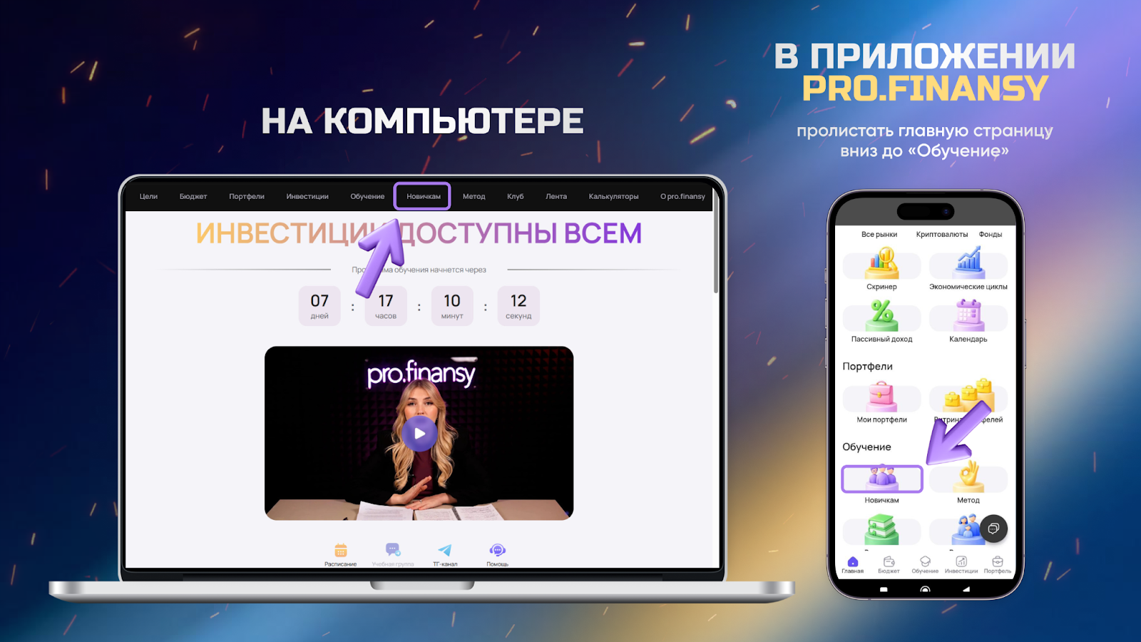В этот день в 11:00 по мск пройдёт первый онлайн-урок. После него откроются уроки в вашем личном кабинете на profinansy.ru и в приложении PRO.FINANSY